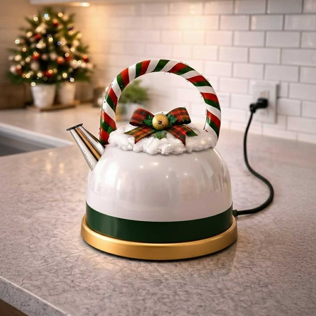 A Christmas themed kettle has a subtle but powerful effect on kitchen ambiance. Placed on a countertop or stove, it becomes a visual anchor that signals warmth and hospitality. Steam rising from its spout feels especially inviting during cold months, reinforcing the sensory experience of the season.