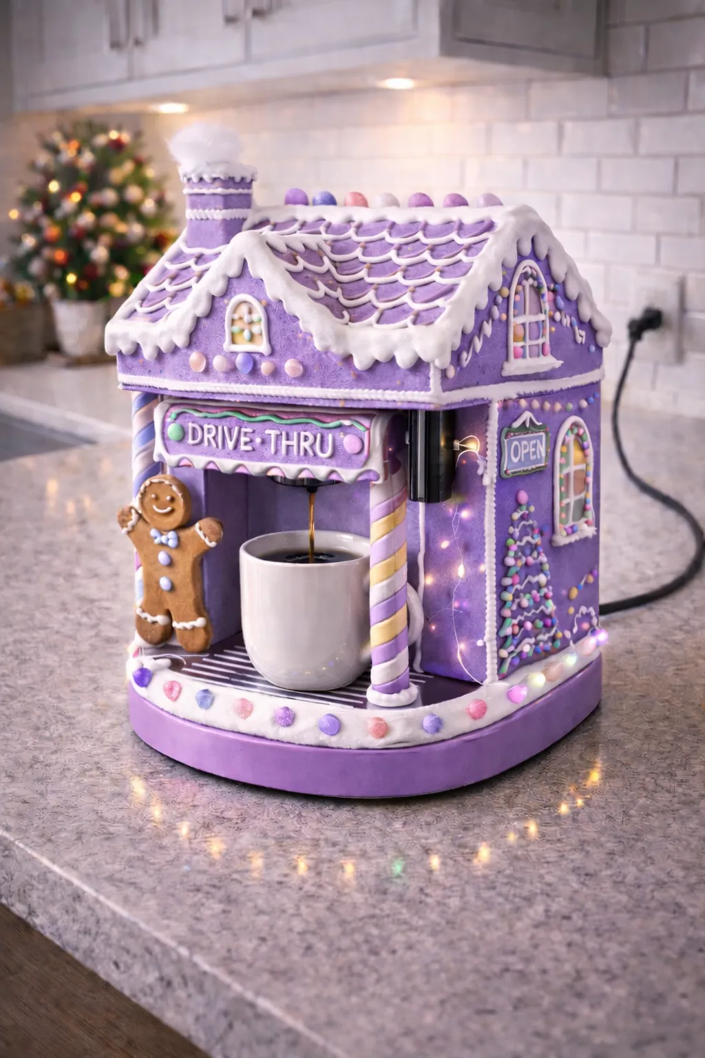 A gingerbread coffee machine naturally becomes a focal point. Its playful form draws attention, anchoring the kitchen visually and emotionally. During winter months, it enhances the cozy atmosphere, pairing effortlessly with wood finishes, warm lighting, and seasonal décor.