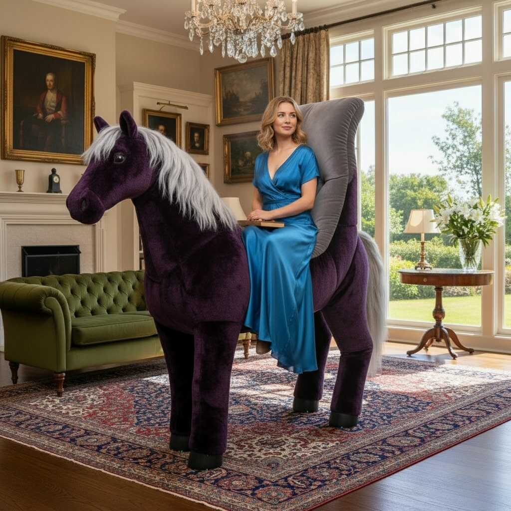 Designers blend the fluid motion of a walking horse with the stationary comfort of a recliner, creating a harmonious contrast that evokes the rhythm of a gallop while providing ultimate relaxation in a single, artistic form.