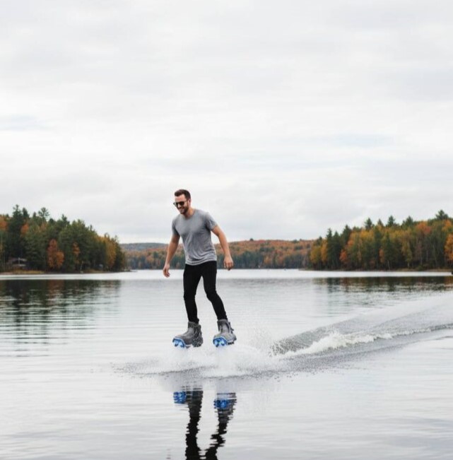 These shoes are perfect for calm lakes or beaches, allowing users to glide over shallow waters for fun exploration or family play without the hassle of boats or boards.