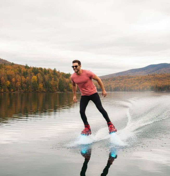 Designers blend jet technology with comfortable shoe construction, creating a hybrid that feels like a sneaker but performs like a watercraft, bridging the gap between everyday footwear and extreme sports equipment.